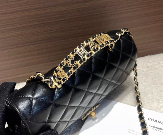 Brand New Chanel 24C Crystal Top Handle Flap Bag in Black Lambskin GHW - microchip. Full set w receipt.